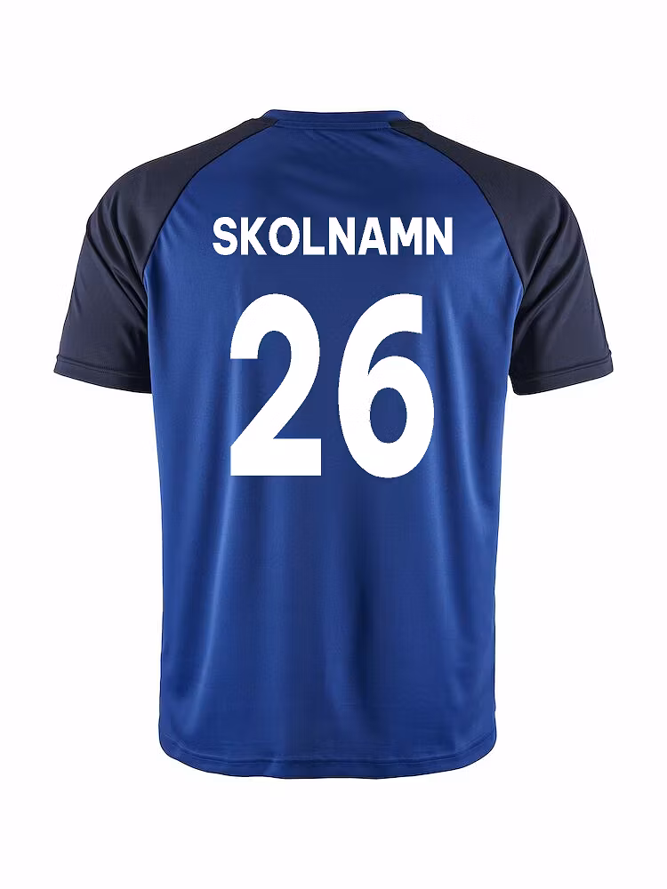 10-pack (blandade storlekar) med siffra på ryggen och siffra på bröstet samt skolans namn ovanför ryggsiffra.